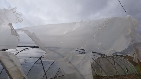 Mais je ne sais pas calculer les pertes à prévoir sur les cultures en place, désormais exposées sans protection. Et je me sens un peu découragée de commencer l’année avec ces réparations urgentes à réaliser, alors que les prévisions météo pour les jours à venir alternent entre pluies et rafales de vent…